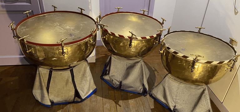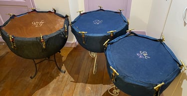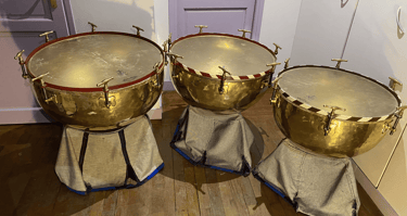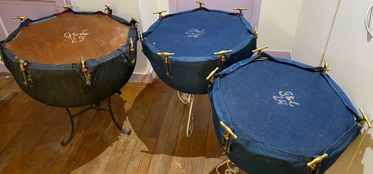 Timbales françaises à clefs du XIXe siècle (en paire ou par trois). Peaux naturelles vitrées en chèvre.