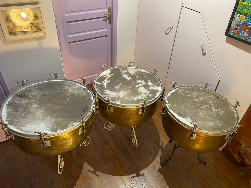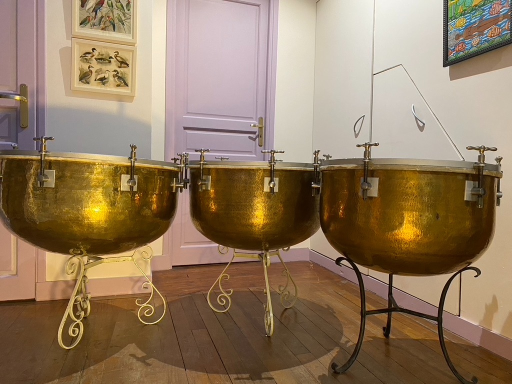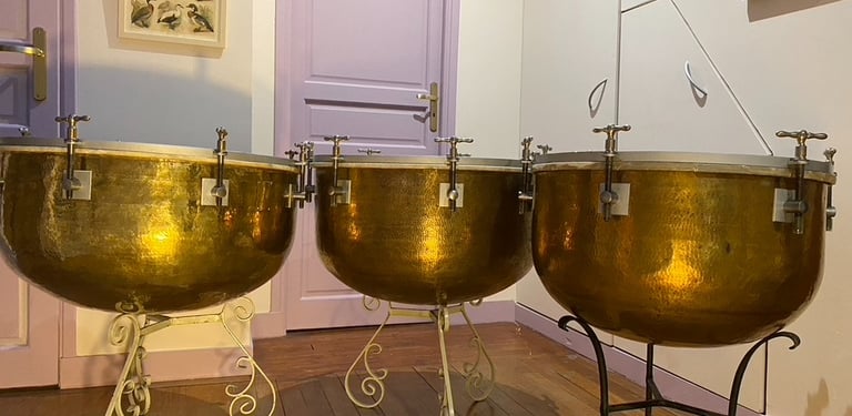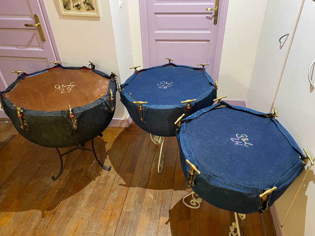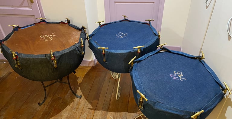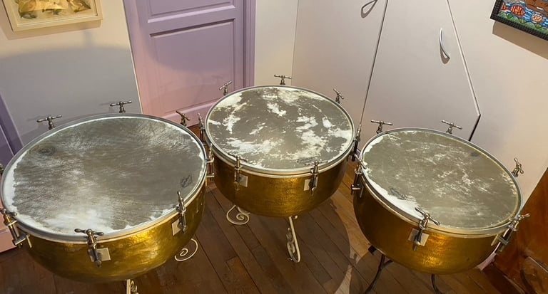 Timbales françaises à clefs du XIXe siècle (en paire ou par trois). Peaux naturelles vitrées en chèvre.